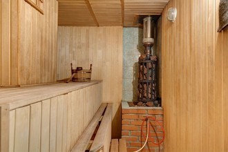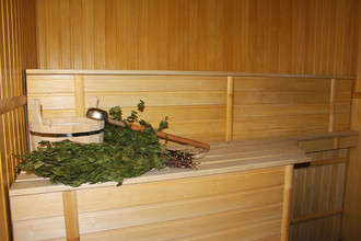 Интерьер банного комплекса, который построен из сруба натурального дерева, напоминает настоящую русскую избу. Вы отлично попаритесь в русской парной на дровах (на входе можно приобрести веник на выбор), а после насладитесь водными процедурами. Для этого есть просторные душевые и обливочное ведро. Полежать и немного вздремнуть можно в комнатах отдыха.